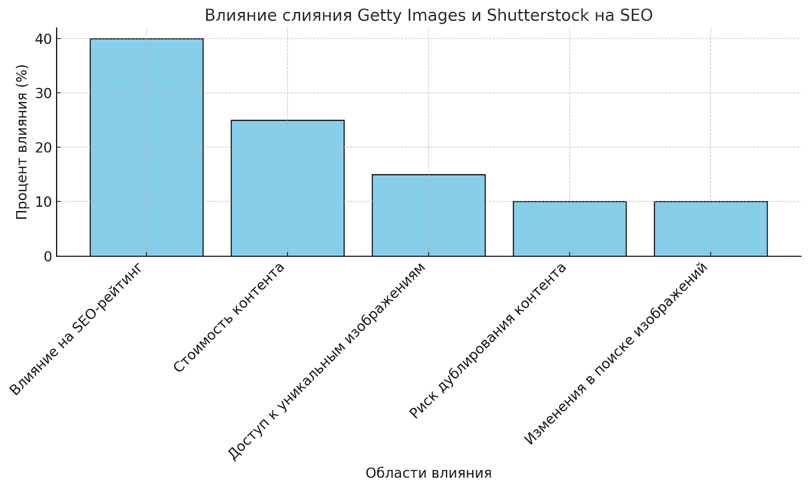 Изменение в ранжировании изображений. Учитывая доминирующее положение объединенной компании, возможно изменение алгоритмов поиска изображений, доступных для лицензирования. Это может повлиять на доступность изображений для SEO-оптимизации, а также на видимость изображений в Google.